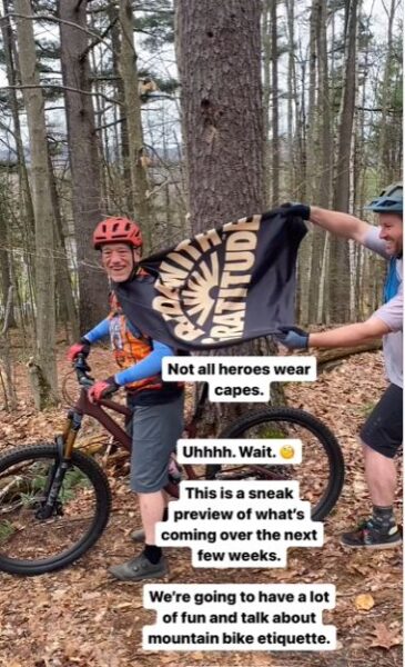 The Northern Forest has been abuzz in recent weeks with reports of masked mountain bike etiquette riders springing into action at various Bike Borderlands networks. Wearing black capes embellished with a shimmering Ride With Gratitude logo, these heroes have been reportedly springing into action when seeing behavior that could jeopardize other trail users, riders themselves, and even access to the trail networks so many people enjoy.